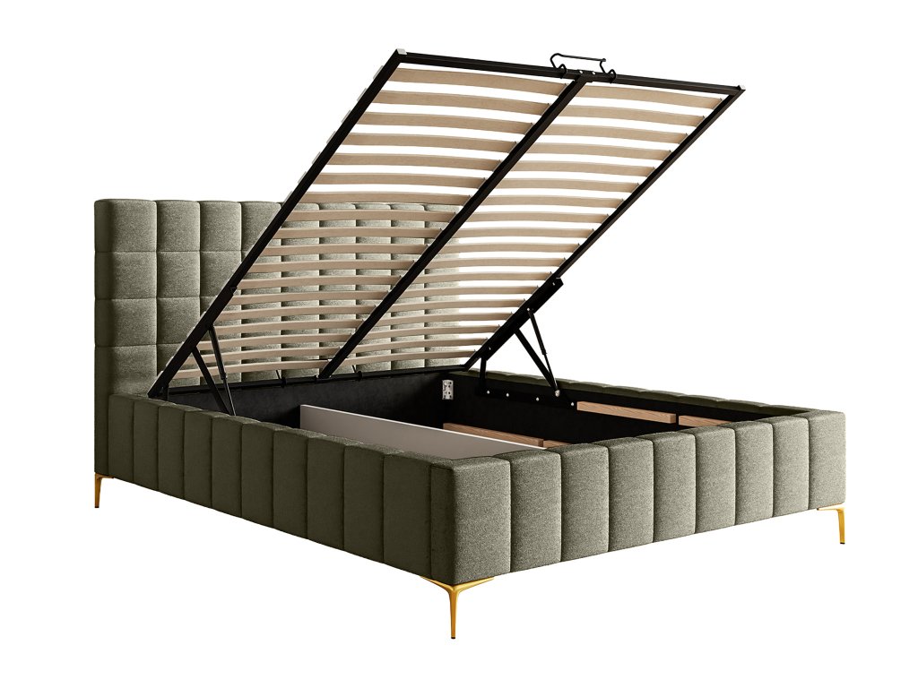 Čalúnená manželská posteľ s úložným priestorom Greid 160x200 - olivová