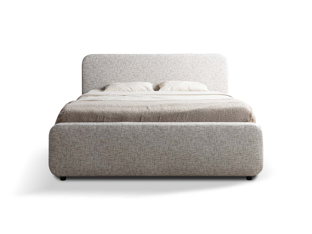 Pod roštom sa nachádza úložný priestor, ideálny na posteľnú bielizeň alebo sezónne veci. Výklopný systém umožňuje jednoduchý prístup. Čalúnenie tvorí látka Imo z polyesteru, ktorá je príjemná na dotyk a má jemne štruktúrovaný povrch. Táto čalúnená posteľ spája praktickosť, pohodlie a moderný dizajn v jednom celku.