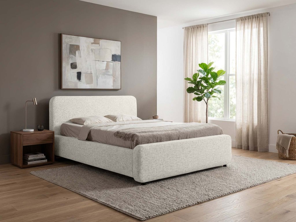 Manželská posteľ Hogan v rozmere 180x200 ponúka dostatok priestoru na kvalitný odpočinok vo dvojici. Smotanová farba pôsobí jemne a vnáša do spálne moderný dizajn. Čalúnená posteľ sa ľahko kombinuje s moderným aj klasickým zariadením a vytvára príjemnú atmosféru na každodenné zaspávanie.