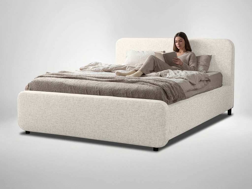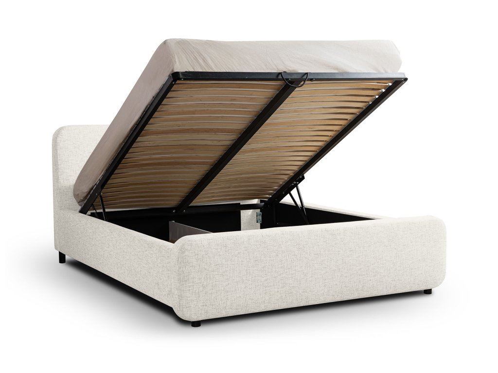 Pod roštom sa nachádza priestranný úložný priestor, vhodný na posteľnú bielizeň či sezónne veci. Vďaka výklopnému systému je prístup rýchly a jednoduchý. Povrch tvorí látka Imo z polyesteru, ktorá je príjemná na dotyk a má jemnú štruktúru. Táto čalúnená posteľ spája štýl, funkčnosť a pohodlie v jednom celku.