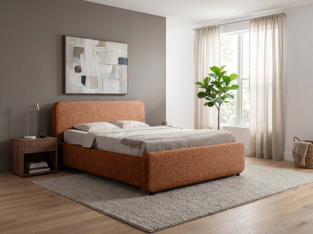 Manželská posteľ Hogan v rozmere 180x200 prináša do spálne výraznú tehlovú farbu, ktorá pôsobí teplo a útulne. Tento odtieň dodáva miestnosti charakter a ľahko sa kombinuje s neutrálnymi aj výraznejšími dekoráciami. Posteľ poskytuje dostatok priestoru pre pohodlný odpočinok dvoch osôb a zároveň sa stáva štýlovým prvkom spálne.