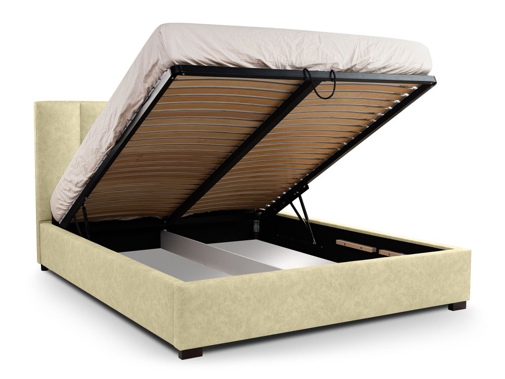 Čalúnená manželská posteľ s úložným priestorom Huigo 160x200 - krémová