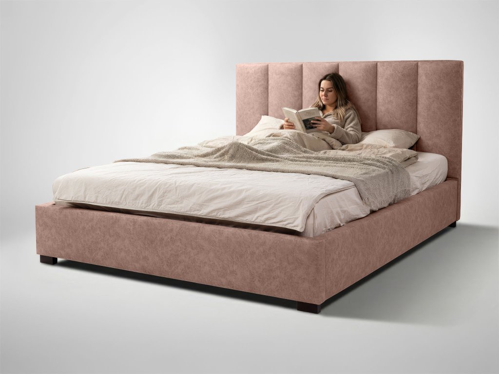 Manželská posteľ Huigo v jemnej ružovej farbe je ideálnou voľbou pre tých, ktorí chcú do spálne vniesť ľahkosť, štýl a príjemnú atmosféru. Veľkorysý rozmer 180 × 200 cm ponúka maximálny komfort a dostatok priestoru pre ničím nerušený spánok. Mäkké čalúnené čelo s výrazným vertikálnym prešívaním pôsobí moderne a zároveň poskytuje pohodlie pri relaxe či čítaní. Ružový odtieň dodáva interiéru teplo a originalitu, pričom sa krásne kombinuje s neutrálnymi farbami aj jemnými dekoráciami. Pevná konštrukcia a kvalitné materiály zaručujú stabilitu, dlhú životnosť a každodenný pocit pohodlia.