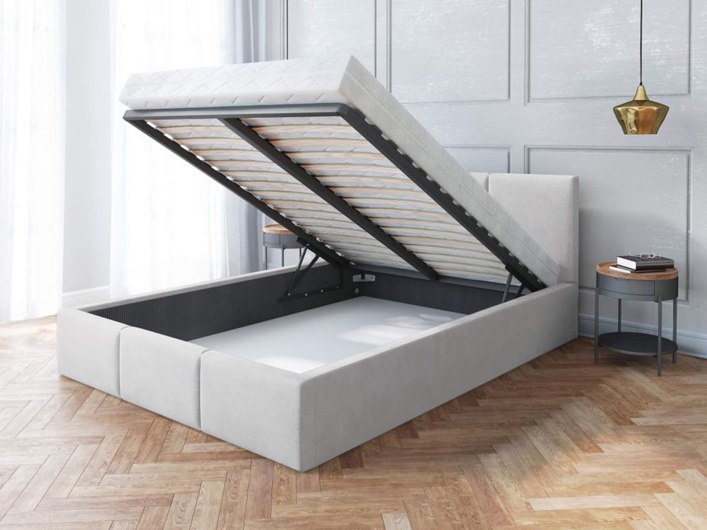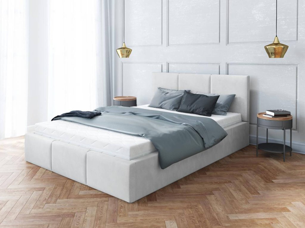 Ak hľadáte čalúnenú manželskú posteľ do spálne, stavte na pohodlnú bielu posteľ Izabela. Dizajnové a mäkké čalúnené vysoké čelo poskytne vynikajúcu podporu pre chrbát, napr. pri čítaní kníh. Výhodou postele je aj veľký úložný priestor. Posteľ je čalúnená mäkkým a odolným velúrom, ktorý je veľmi jemný a príjemný na dotyk, a navyše sa nežmolkuje. Posteľ má kovový rám s pružnými brezovými lištami. Nosnosť postele je až 360 kg. Na dvíhanie roštu v posteli sú využívané dva plynové piesty o sile 400 N až 1000 N/ks, v závislosti od rozmeru postele.