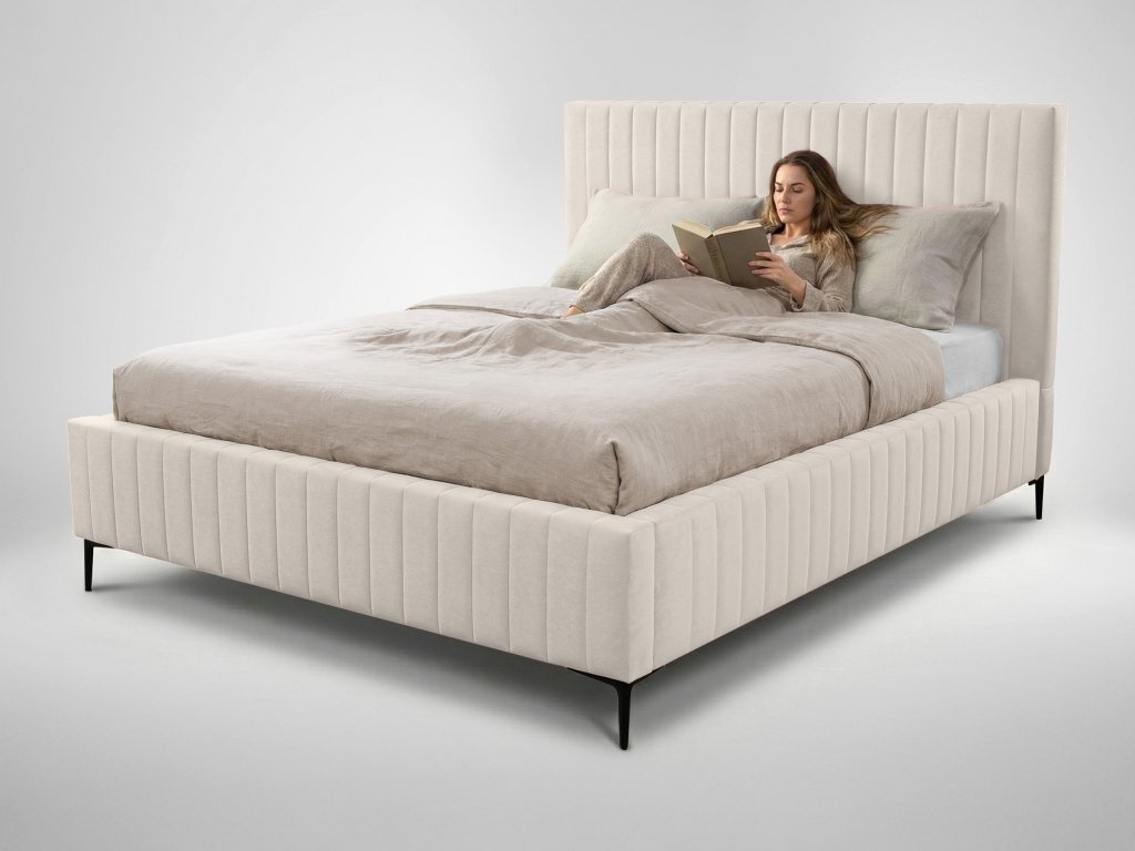 Čalúnená manželská posteľ s úložným priestorom Layla 180x200 - smotanová