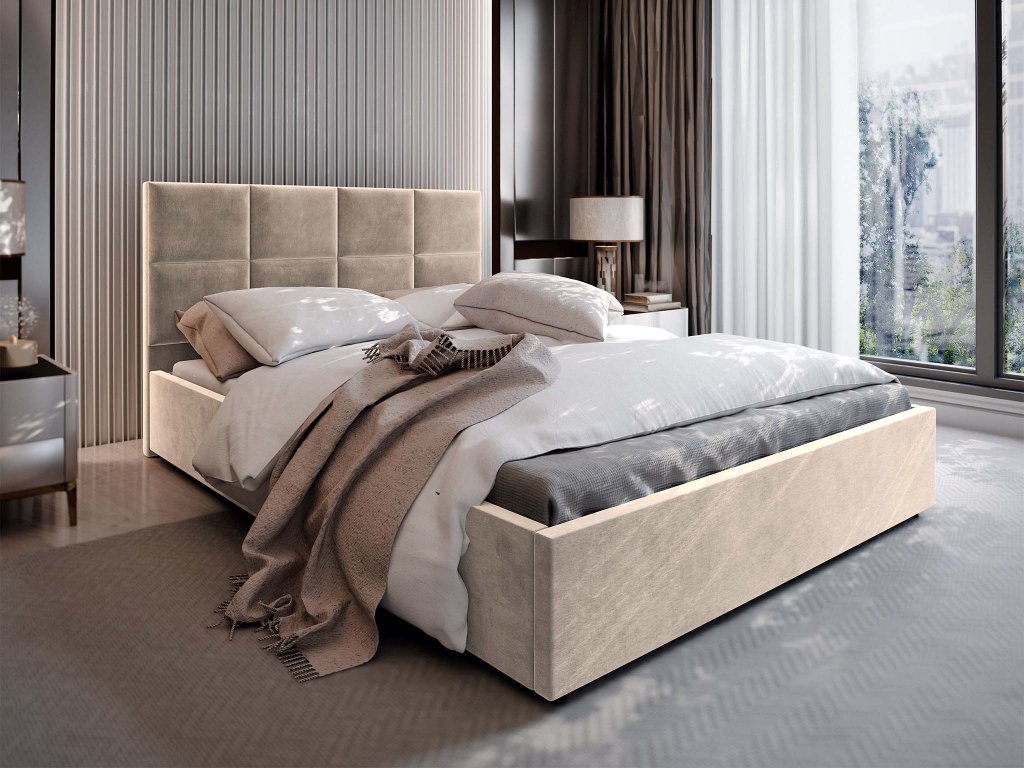 Čalúnená manželská posteľ s úložným priestorom Limena 160x200 - béžová