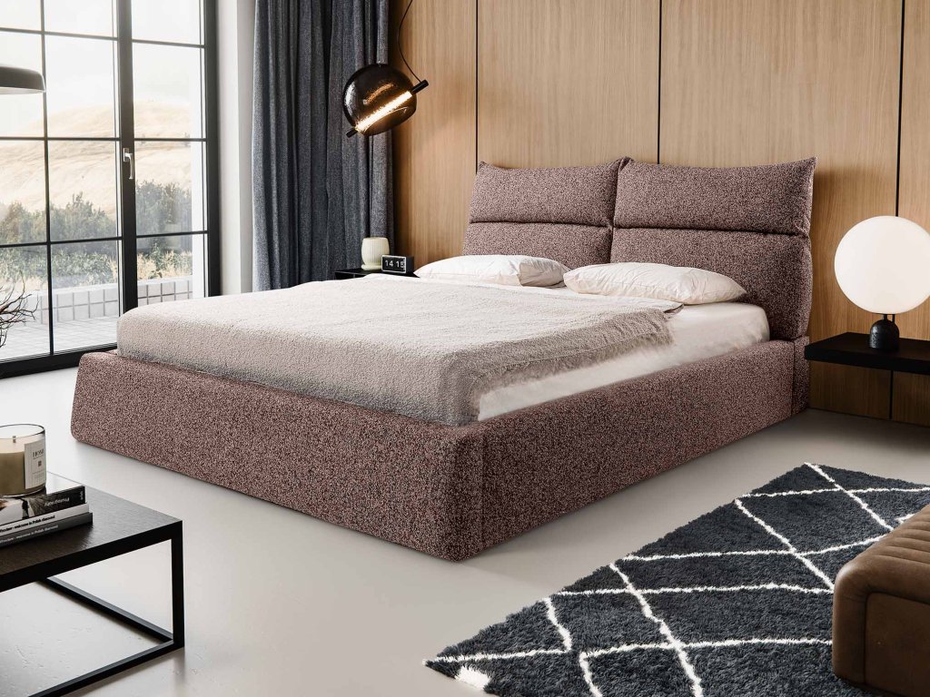 Hlavnou prednosťou tejto postele je praktický úložný priestor, ktorý udrží spálňu čistú a upratanú. Stabilný kovový rám zabezpečuje rovnomernú podporu matraca a vysoké polstrované čelo poskytuje pohodlie pri večernom relaxe alebo čítaní. Jemná ružová látka dodáva spálni nežný a romantický nádych, pričom je odolná a ľahko sa udržiava.