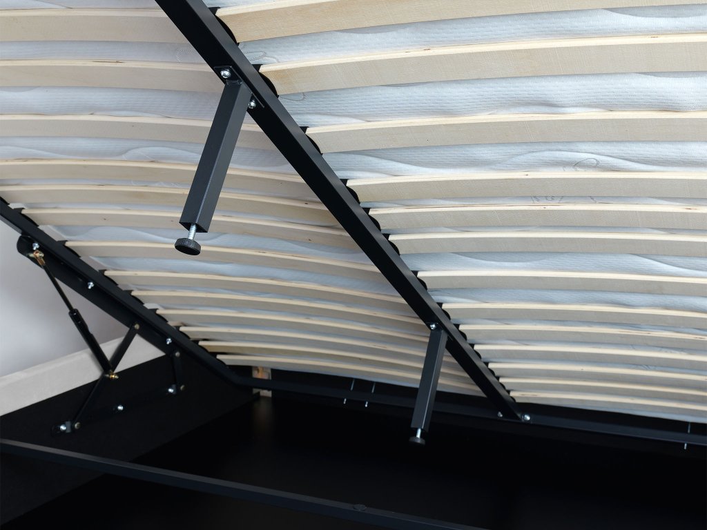 Posteľ je vybavená kovovým roštom so 17 radmi zakrivených lamiel, ktoré pružne kopírujú pohyby tela a zabezpečujú optimálnu oporu matraca. Tento systém prispieva k pohodlnému, zdravému a relaxačnému spánku. Plynový mechanizmus umožňuje jednoduché a bezpečné nadvihnutie roštu bez námahy.