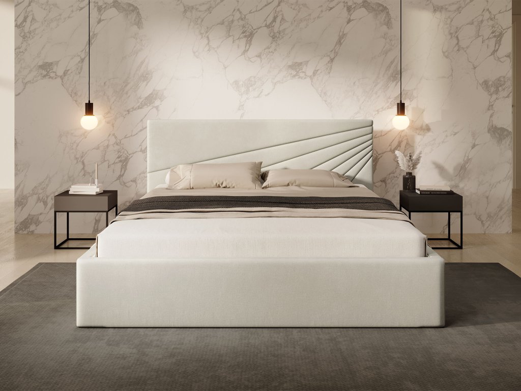 Čalúnená manželská posteľ s úložným priestorom Morenzo Slim 160x200 - béžová
