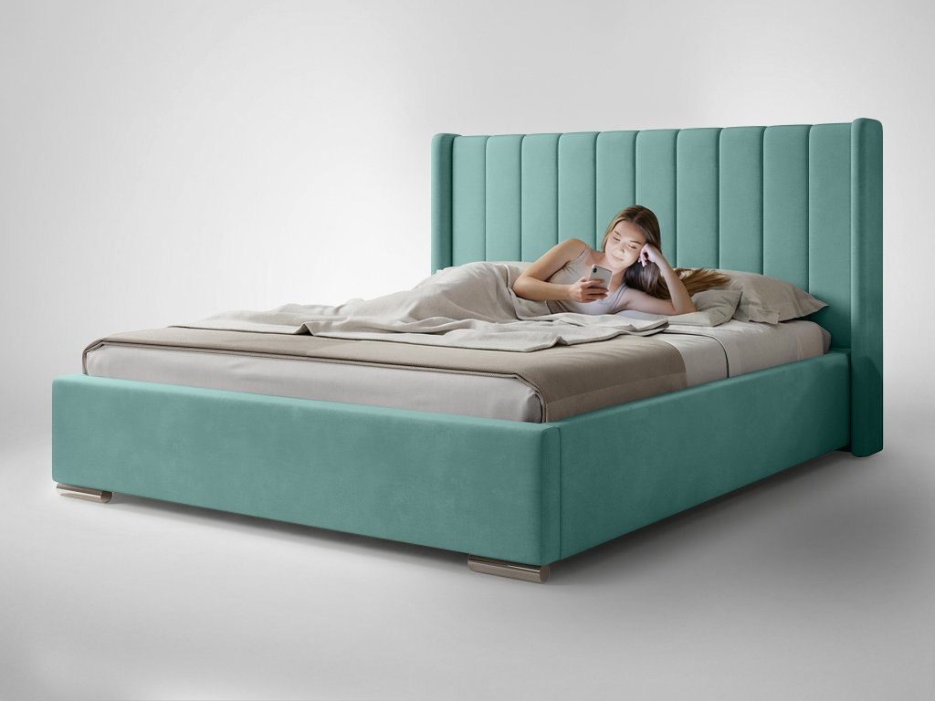 Čalúnená manželská posteľ s úložným priestorom Palmira 140x200 - tyrkysová