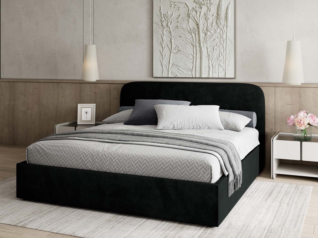Čalúnená manželská posteľ s úložným priestorom Renive K 140x200 - čierna