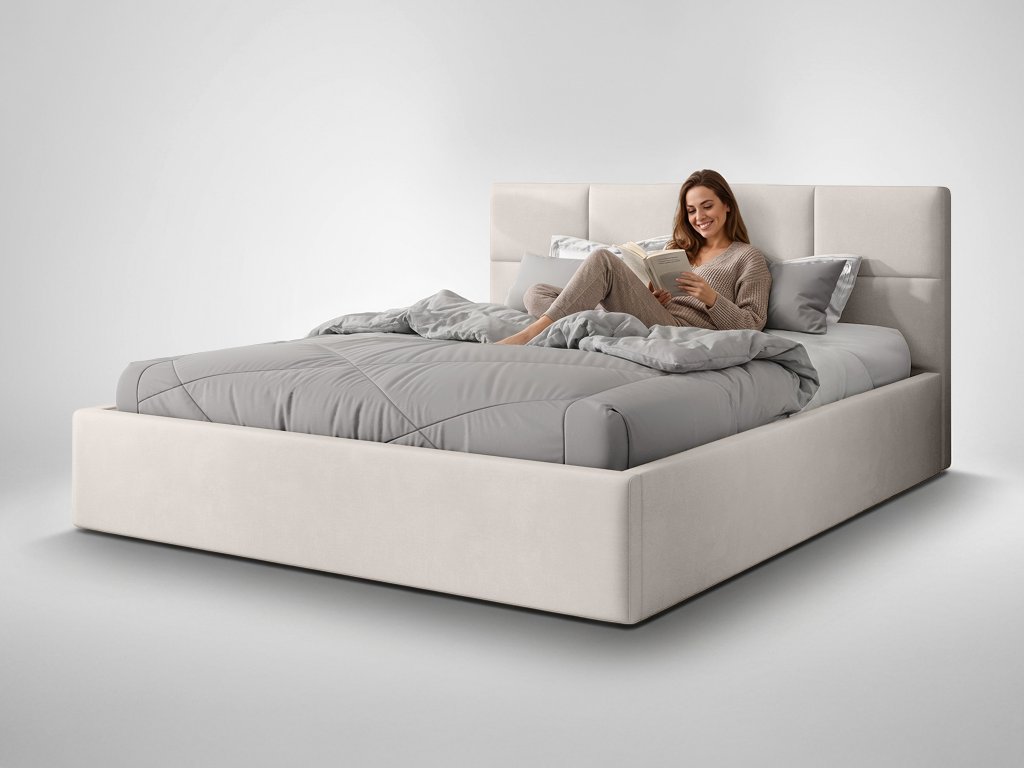 Na prvý pohľad zaujme béžová čalúnená posteľ Rinimi Slim svojím jednoduchým, no výrazne elegantným vzhľadom. Vysoké čelo s jemným obdĺžnikovým prešívaním pôsobí štýlovo a poskytuje pohodlie pri čítaní či oddychu. Stabilná konštrukcia z kombinácie dreva a laminovanej dosky zaručuje dlhú životnosť aj správnu cirkuláciu vzduchu pod matracom. Posteľ stojí na klzákoch a ponúka priestranný úložný priestor, ktorý sa vďaka plynovým vzperám otvára ľahko a plynulo.