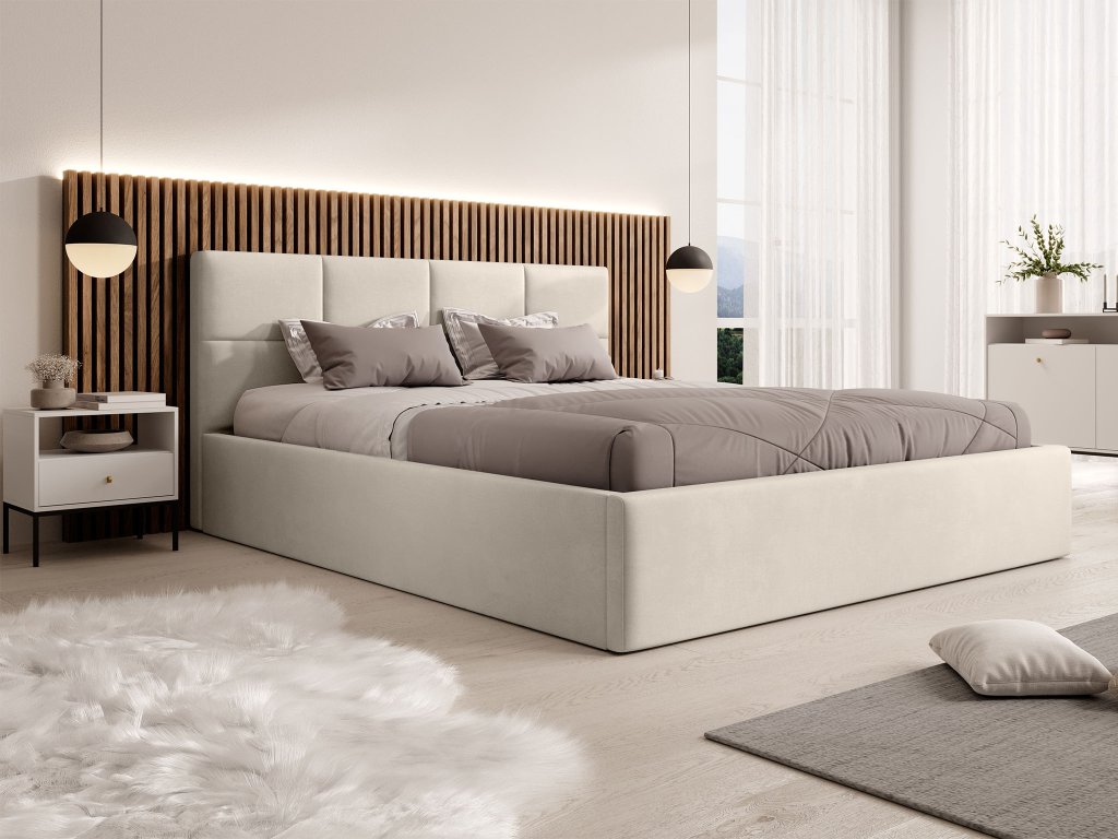 Čalúnená manželská posteľ s úložným priestorom Rinimi Slim 160x200 - studená béžová