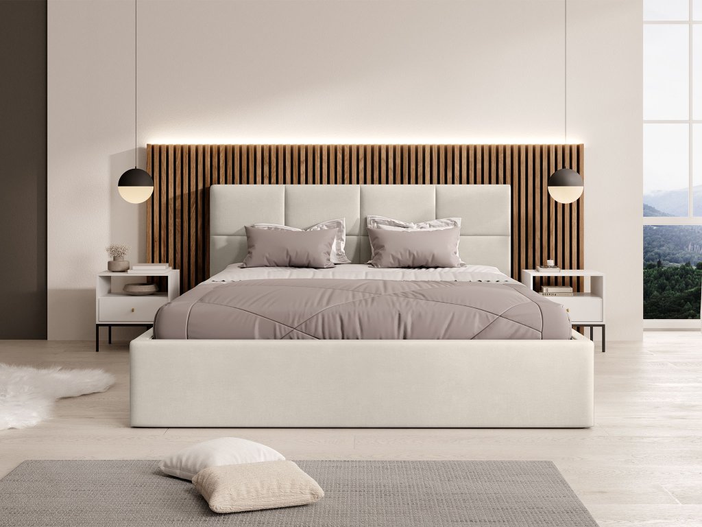 Praktický úložný priestor prístupný cez plynulé plynové vzpery poskytuje dostatok miesta na sezónne oblečenie či posteľnú bielizeň. Otváranie je jednoduché, tiché a bez námahy, čo z postele robí nielen štýlový, ale aj vysoko funkčný prvok vašej spálne.