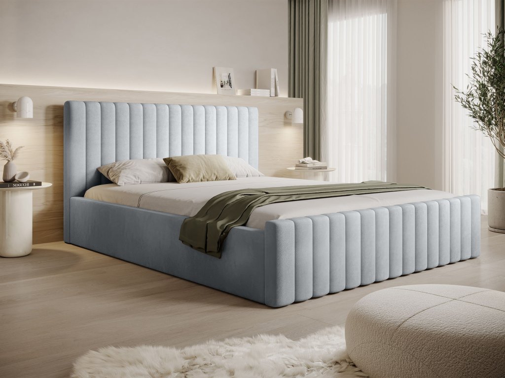 Čalúnená manželská posteľ s úložným priestorom Roso Slim 140x200 - oceľová modrá