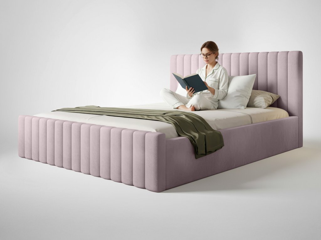 Čalúnená manželská posteľ s úložným priestorom Roso Slim 140x200 - svetlofialová