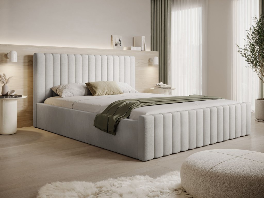 Doprajte svojej spálni výnimočný štýl a pohodlie s čalúnenou manželskou posteľou Roso Slim. Táto kvalitná posteľ v elegantnej svetlosivej farbe je navrhnutá tak, aby spájala moderný dizajn, praktickosť a dlhú životnosť. Posteľ je potiahnutá látkou Riviera – hebkou zamatovou textíliou známej pre svoju jemnosť, odolnosť a jednoduchú údržbu. Zamat dodáva posteli luxusný vzhľad a zároveň je veľmi príjemný na dotyk. Celá konštrukcia je čalúnená, pričom predné vysoké čelo zdobí výrazné vertikálne prešívanie. Okrem dekoratívnej funkcie je čelo aj praktické – poskytuje pohodlnú oporu pri sedení či čítaní.
