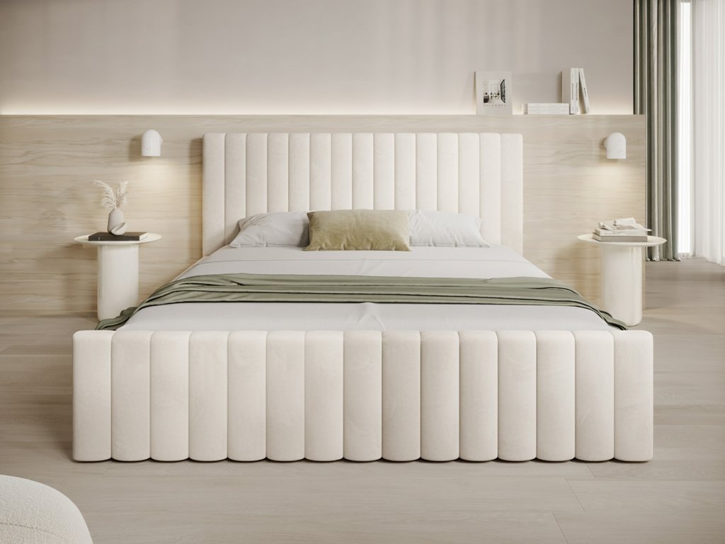 Premeňte svoju spálňu na miesto pohodlia a sofistikovaného štýlu s manželskou posteľou Roso Slim. Jej jemná piesková látka a moderný vzhľad vytvárajú harmonickú kombináciu elegancie a praktickosti. Celá konštrukcia je dôkladne čalúnená zamatovou textíliou Riviera, ktorá je známa svojou hebkosťou, jednoduchou údržbou a odolnosťou. Predné vysoké čelo s výrazným vertikálnym prešívaním nielen pôsobí štýlovo, ale aj poskytuje pohodlnú oporu pri sedení alebo čítaní v posteli.
