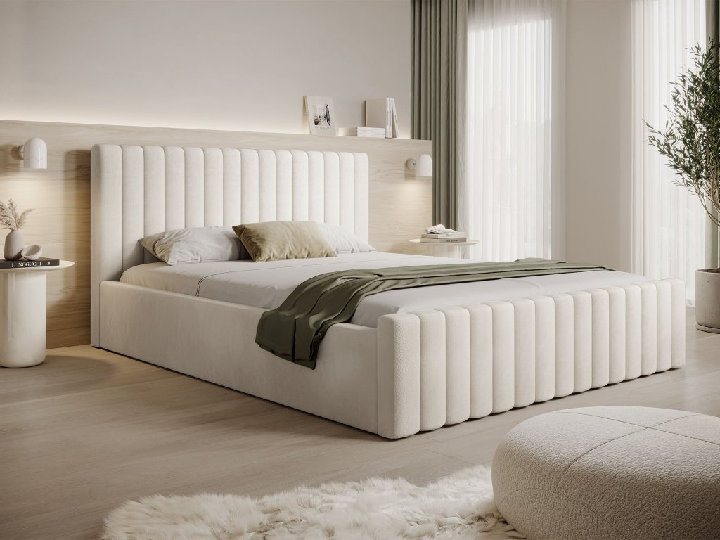 Doprajte svojej spálni nový rozmer komfortu a štýlu s manželskou posteľou Roso Slim. Elegantný pieskový odtieň látky a sofistikovaný dizajn robia z postele moderný doplnok, ktorý upúta pozornosť. Zamatová textília Riviera, použitá na celom čalúnení, je jemná na dotyk, odolná voči opotrebovaniu a zároveň sa ľahko udržiava. Vysoké čelo s prešívaním dodáva priestoru vizuálnu dynamiku a poskytuje pohodlnú oporu pri sedení, čítaní alebo relaxe v posteli.