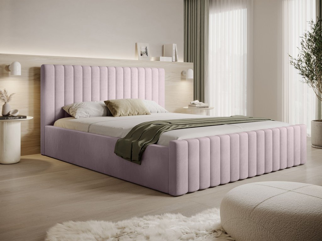 Čalúnená manželská posteľ s úložným priestorom Roso Slim 180x200 - svetlofialová