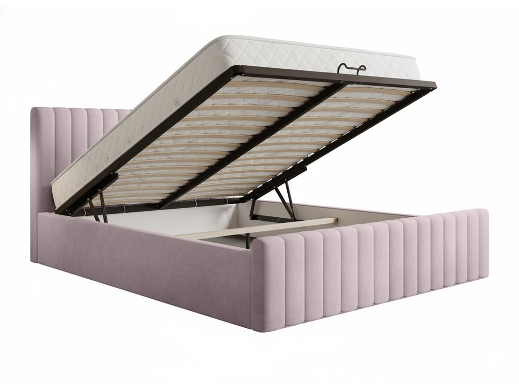 Roso Slim v nežnom svetlofialovom odtieni dodá vašej spálni nádych moderného luxusu. Zamatová látka Riviera, ktorá pokrýva celé čalúnenie, je príjemná na dotyk, mimoriadne odolná a ľahko sa udržiava, takže posteľ si dlhodobo zachová svoj pôvab. Elegantné čelo so zvislým prešívaním pôsobí dekoratívne a zároveň slúži ako pohodlná opora pri sedení či oddychu. Vo vnútri rámu sa nachádza úložný priestor rozdelený na dve samostatné časti. Umožňuje ľahko usporiadať potrebné veci a udržať v spálni poriadok. Prístup zabezpečuje kovový rošt so 34 lamelami, ktorý sa zdvíha plynule a pomáha udržiavať matrac dobre odvetraný, čím sa predchádza vlhkosti a tvorbe plesní.