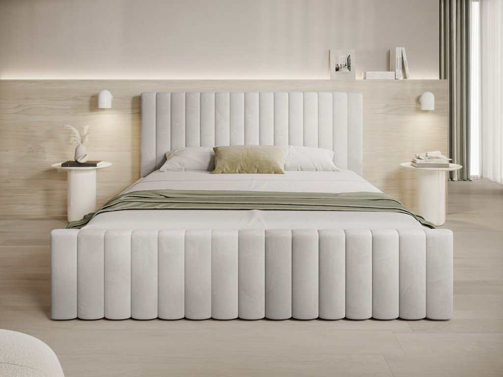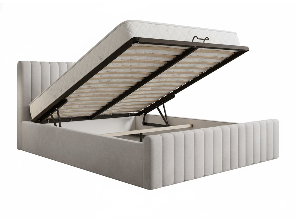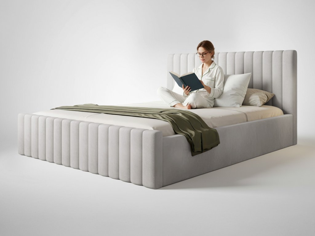Posteľ Roso Slim v svetlosivom vyhotovení dodá vášmu interiéru jemný, moderný charakter. Zamatový poťah Riviera, ktorý obklopuje celú konštrukciu, prináša do miestnosti príjemný dotyk luxusu. Látka sa vyznačuje vysokou odolnosťou, hladkým povrchom a jednoduchou údržbou, takže si zachováva krásny vzhľad aj pri každodennom používaní. Výrazné zvislé prešívanie na priestrannom čele vytvára elegantný prvok, ktorý je zároveň pohodlnou oporou pri čítaní či večernom relaxe. Vo vnútri postele nájdete priestranný úložný priestor rozdelený na dve prehľadné sekcie, ktoré uľahčia organizovanie vecí. Otváranie je riešené kovovým roštom so 34 pevnými lamelami – ten sa zdvíha jednoducho a zároveň umožňuje neustále odvetrávanie, vďaka čomu je matrac chránený pred vlhkosťou aj plesňami.