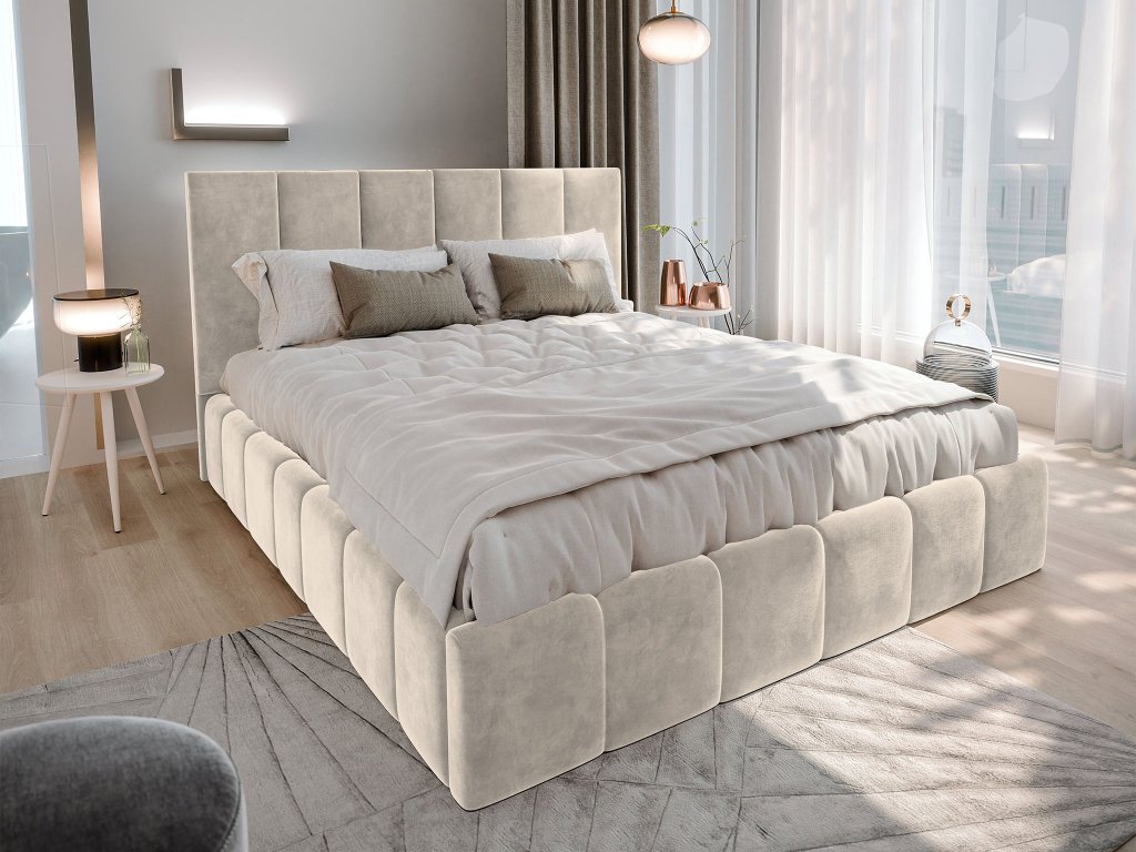 Čalúnená manželská posteľ s úložným priestorom Taranto 160x200 - krémová