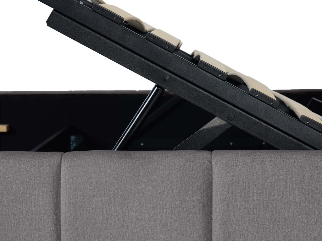 Okrem dizajnu však posteľ taranto ponúka aj vysokú mieru praktickosti. Pod výklopným kovovým roštom s lamelami sa ukrýva veľkorysý úložný priestor, ktorý ľahko pojme obliečky, vankúše, sezónne prikrývky alebo iné predmety. Toto riešenie je obzvlášť užitočné v menších spálňach, kde sa počíta každý centimeter.