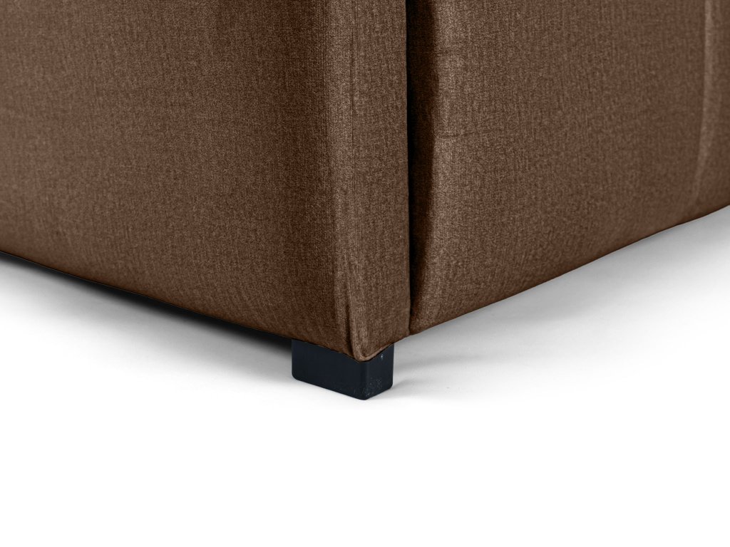Celá posteľ je čalúnená látkou Monolith, ktorá patrí medzi najobľúbenejšie čalúnické materiály. Jej povrch je zamatovo hebký a príjemný na dotyk, čo umocňuje pocit luxusu pri každom kontakte. Zároveň je mimoriadne odolná voči oderu, a vďaka špeciálnej hydrofóbnej vrstve dokáže odolávať aj rozliatym tekutinám – tie sa nevsajú dovnútra, ale zostanú na povrchu, takže ich ľahko zotriete. To zaručuje, že posteľ si zachová svoj svieži a elegantný vzhľad aj po rokoch používania. Svetlohnedá farba v kombinácii s touto prémiovou látkou dodáva spálni prirodzené teplo a útulnosť, vďaka čomu sa posteľ Taranto stane jej dominantou.