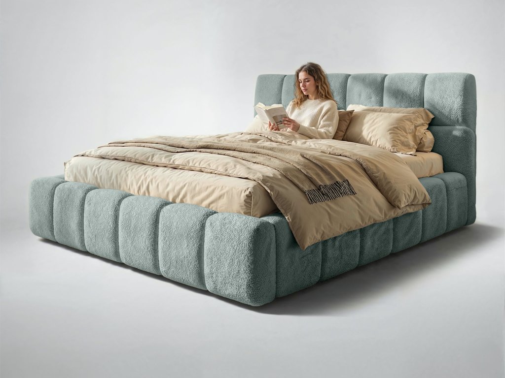 Pre harmonický vzhľad spálne odporúčame posteľ doplniť o mäkké dekoračné vankúše, prehoz na posteľ alebo štýlové nočné stolíky. Skvelo sa hodia aj teplé svetelné zdroje, ktoré zvýraznia textúru čalúnenia a vytvoria príjemnú atmosféru.