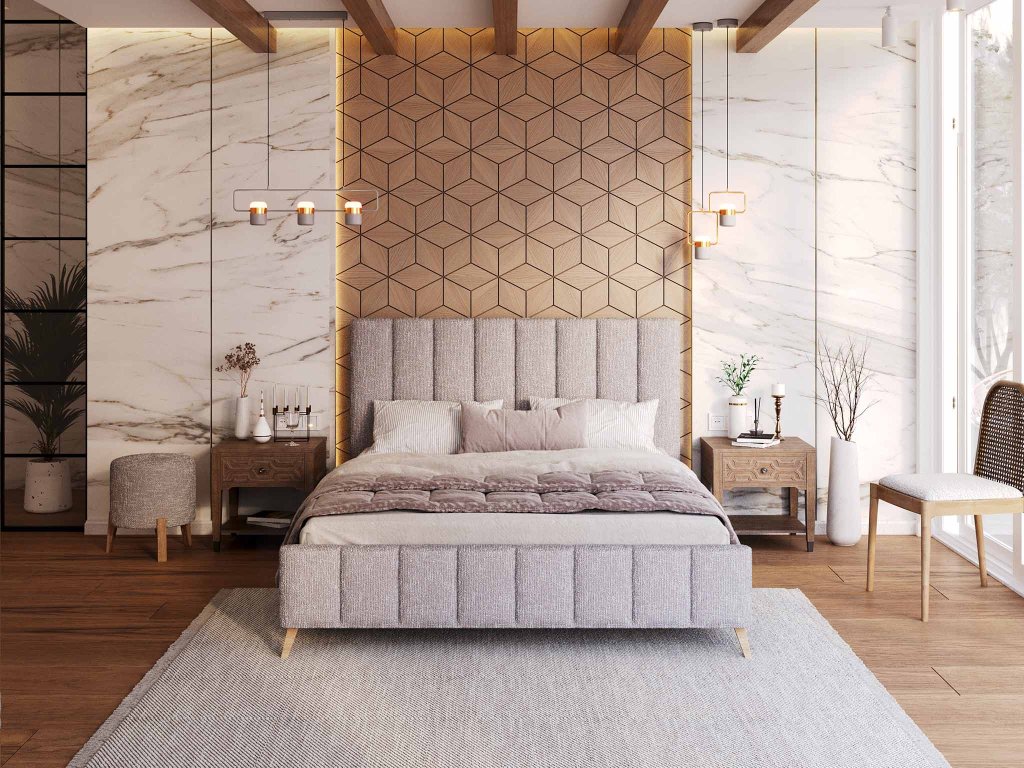 Manželská posteľ Safar je vyrobená z kvalitnej nábytkovej dosky, ktorá zaručuje pevnosť a stabilitu, pričom drevené nohy pridávajú nádych prírodnosti a zároveň zabezpečujú vysokú nosnosť a odolnosť voči každodennému používaniu. Vďaka pevnému drevenému roštu z borovicového dreva sa môžete spoľahnúť na optimálnu podporu a komfort počas spánku. Opierka hlavy s vertikálnym prešívaním nie len skvele vyzerá, ale poskytuje aj praktickú oporu pri čítaní alebo sledovaní televízie. Jej škandinávsky štýl, charakteristický čistými líniami a minimalizmom, prináša do spálne pocit harmónie a pokojnej elegancie.