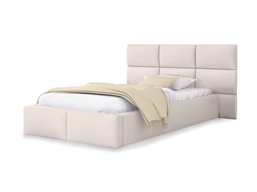 DONY 120x200 je krásna krémová posteľ s vysokým mäkkým čelom, výklopným lamelovým roštom a úložným priestorom. Moderný vzhľad sa skvelo dopĺňa s funkčnou stránkou postele. Čalúnené čelo oceníte, ak si v posteli radi čítate knihy alebo pozeráte filmy či seriály. Posteľ je vyrobená z kvalitných a pevných materiálov. Celú ju čalúni príjemná látka Trinity, takže pri zostupovaní z postele sa vám nohy neodrú o tvrdú hranu dosky. K priestrannému úložnému priestoru sa dostanete vyklopením roštu. Uskladniť si tu môžete svoje lôžkoviny, ktoré takto budete mať neustále na dosah ruky. Zdvíhací mechanizmus výklopného roštu je podporovaný dvoma plynovými piestami. Prvky v posteli sú spojené pomocou špeciálnych skrutiek s veľkým priemerom, vďaka čomu je posteľ stabilná a odolná. Použitý výstužný spoj zaručuje, že sú časti postele navzájom dobre spojené.