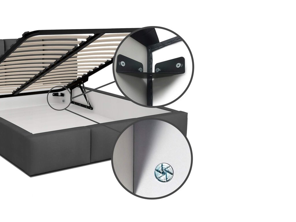 - Materiál: látka Trinity (100 % polyester), konštrukcia z nábytkovej DTD dosky, plynové piesty na zdvíhanie roštu