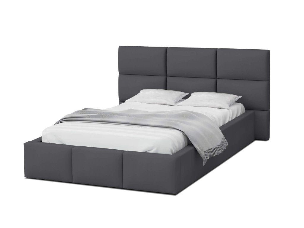 Čalúnená manželská posteľ Dony v nadčasovej farbe grafit si vás získa mäkkým vysokým čelom