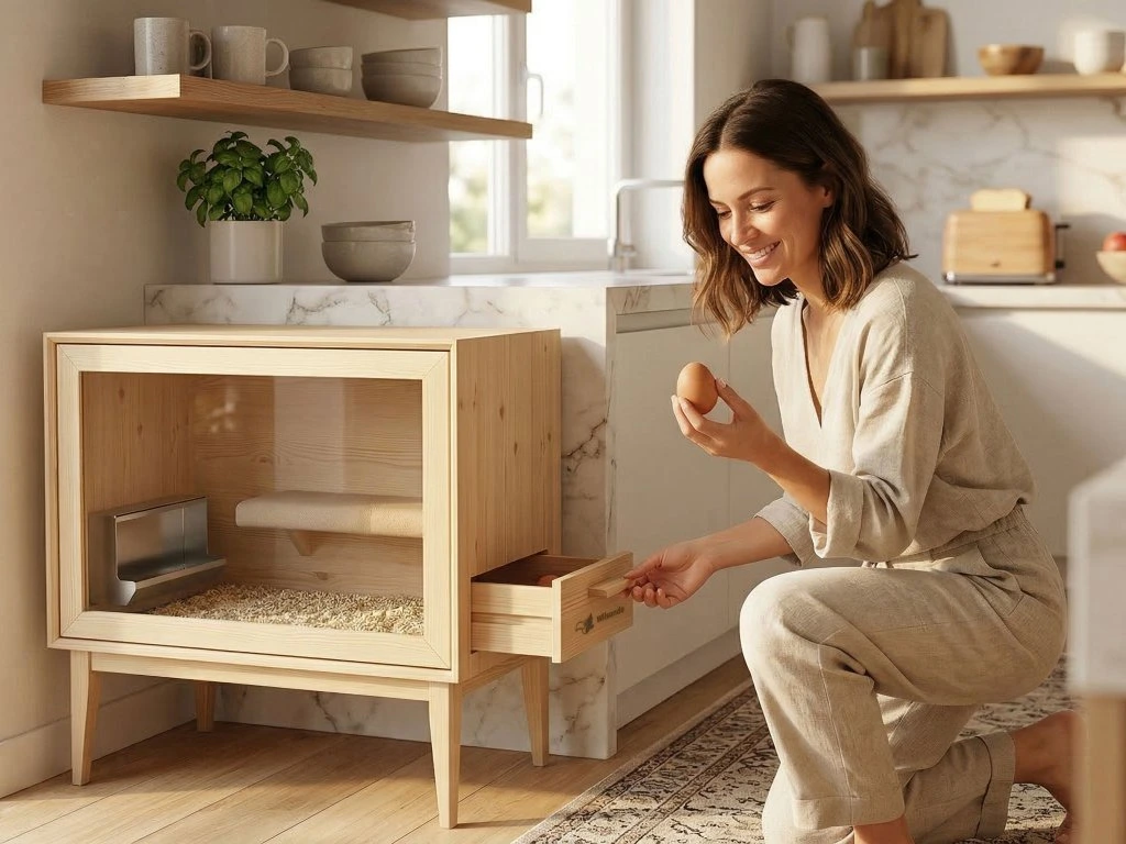 Kto hovorí, že domáci miláčik musí byť len pes alebo mačka? Chic Hen prináša revolúciu do mestského bývania. Tento luxusný, voľne stojaci interiérový kurín je vyrobený z prémiovej masívnej borovice. Je navrhnutý tak, aby zapadol do každej štýlovej obývačky, a pritom poskytol vašej nosnici komfort päťhviezdičkového hotela.