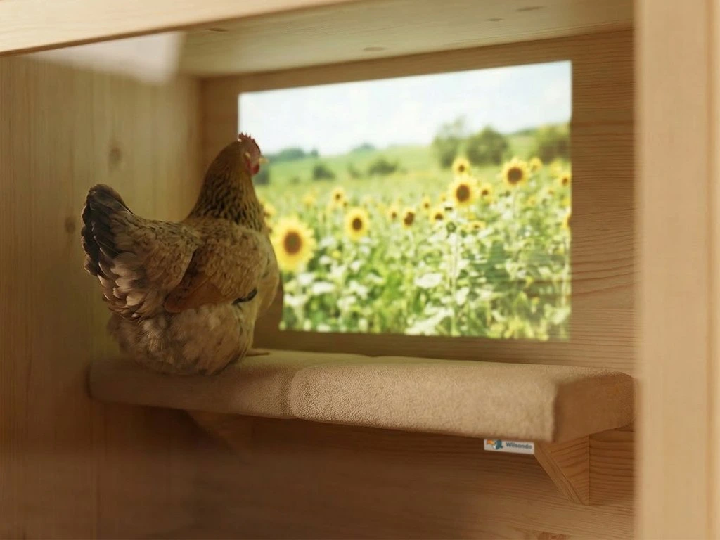 - Kino pre hydinu: Vstavaný projektor premieta na stenu kurína zábery zo slnkom zaliatej lúky pre dokonalý pocit voľného výbehu. Garantujeme zvýšenie znášky o 20 %!