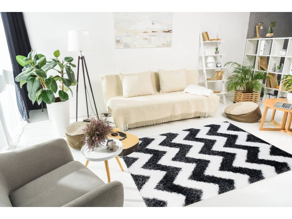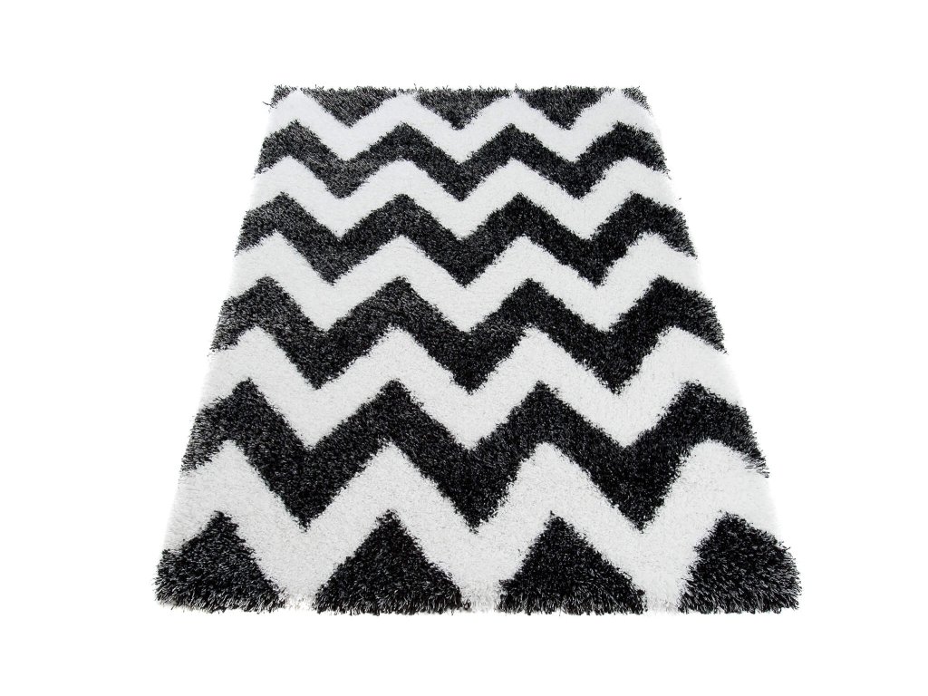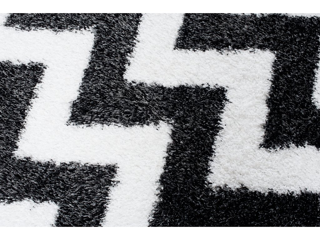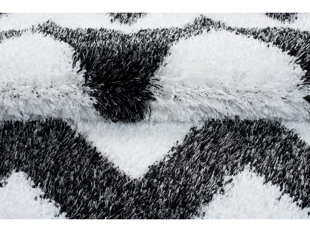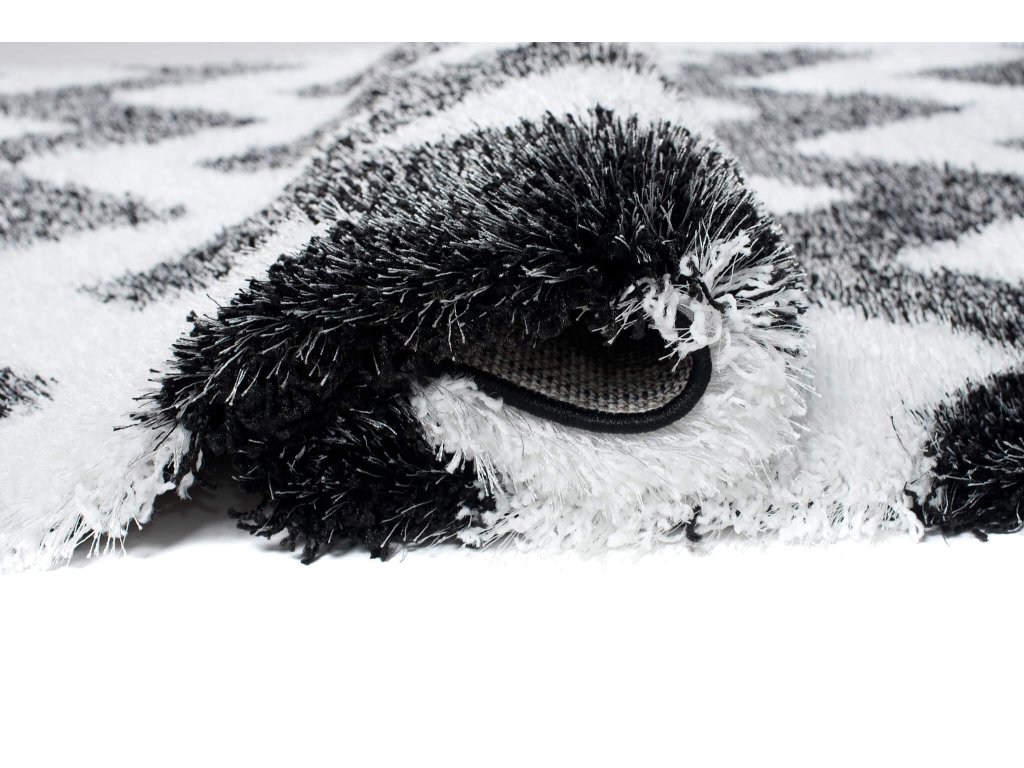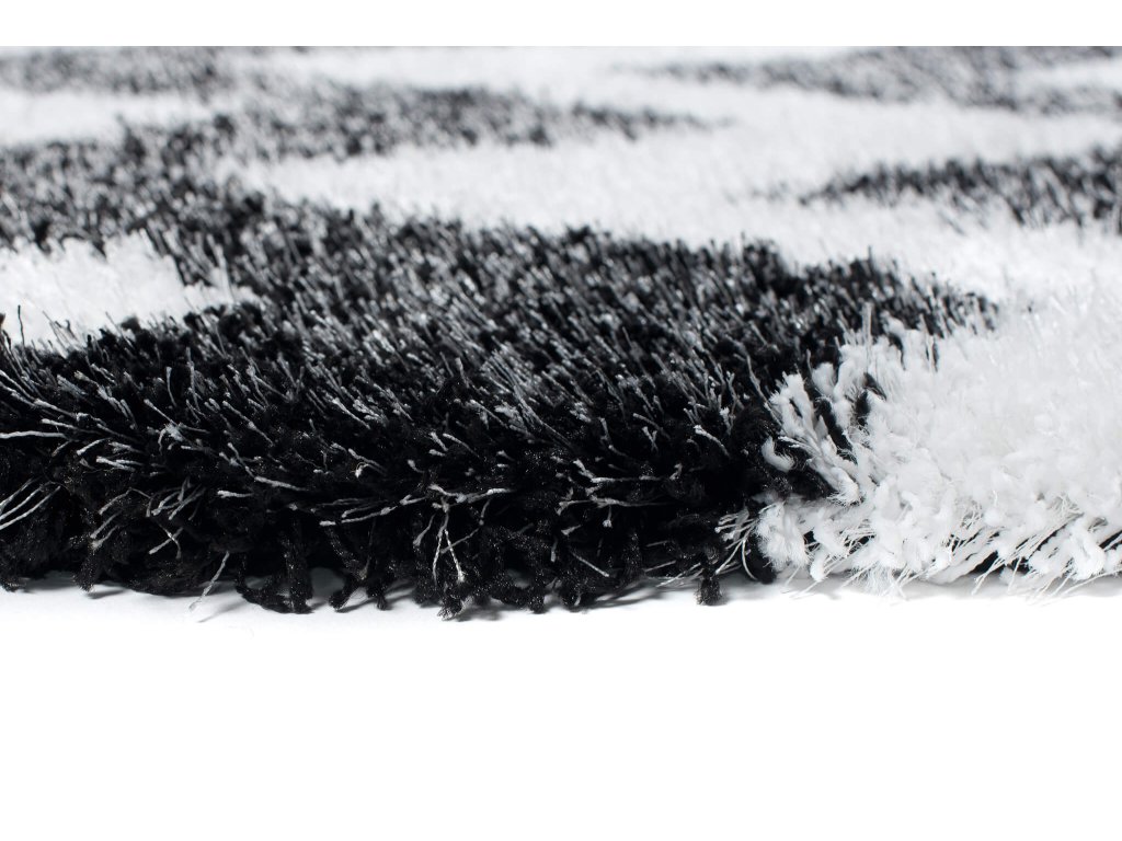 Čierno-biely plyšový koberec so vzorom Sabrina