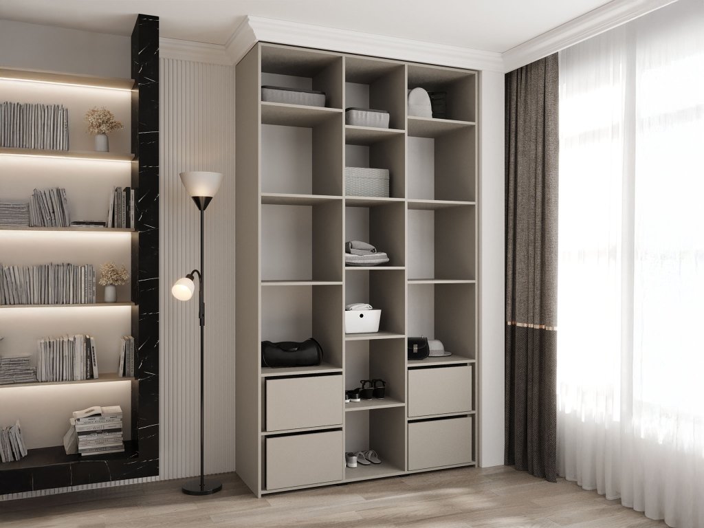 Priestranná skriňa Como 4 s tyč na zavesenie a zabudovanými poličkami