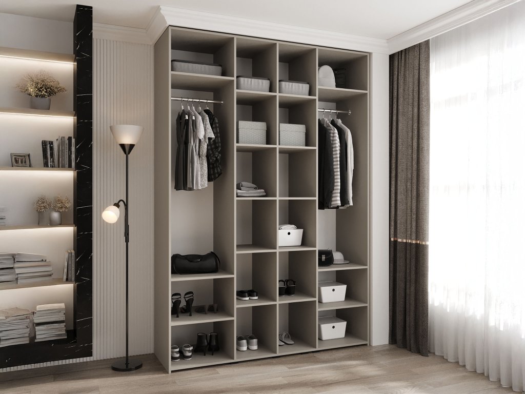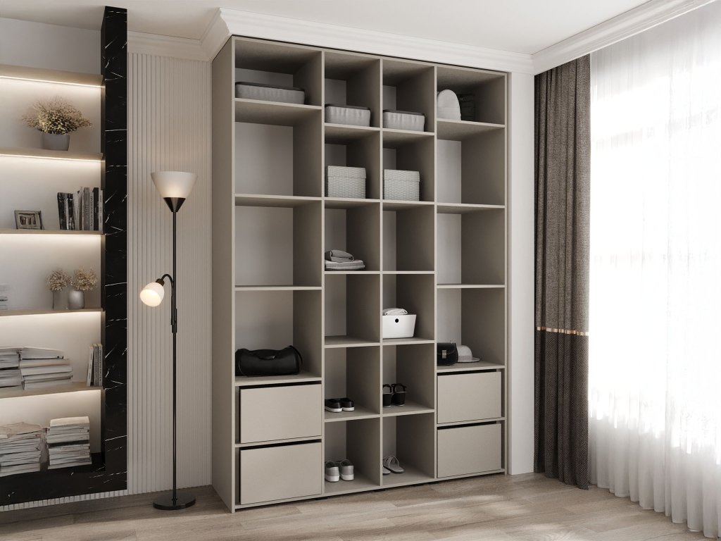 Priestranná skriňa Como 4 s tyč na zavesenie a zabudovanými poličkami