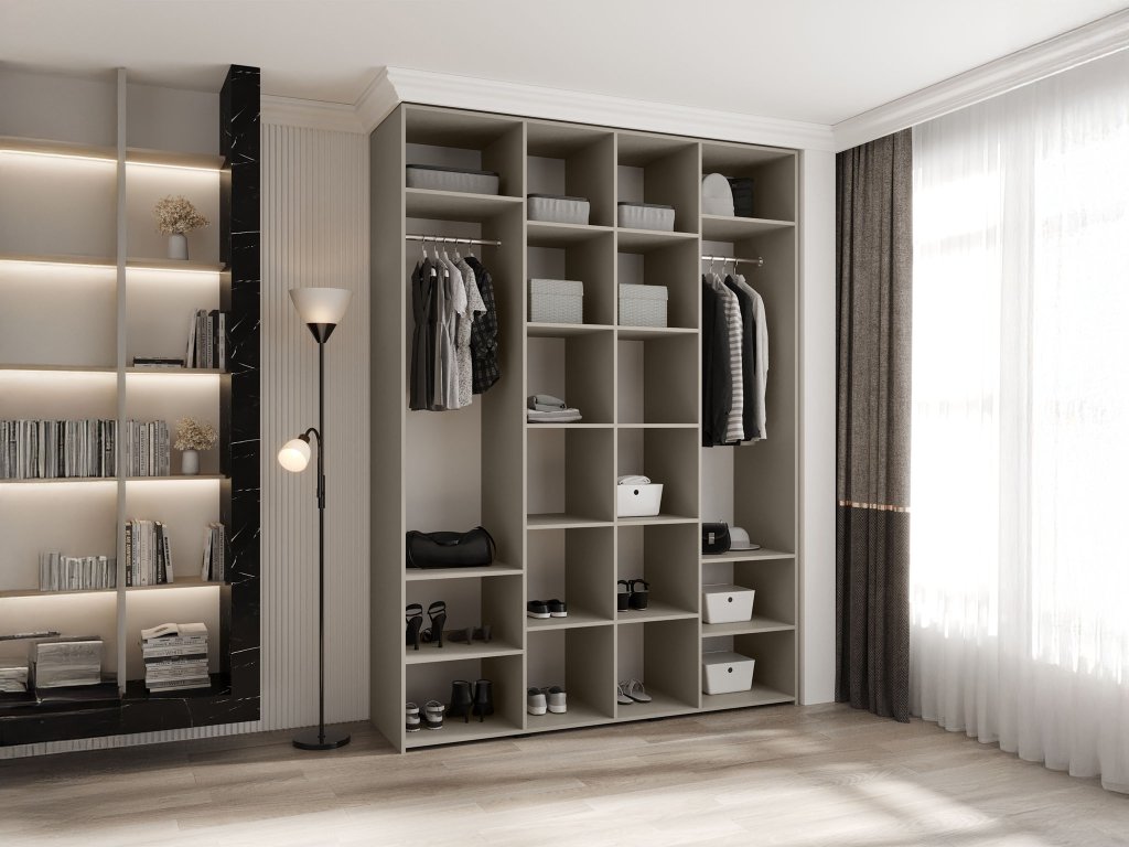 Priestranná skriňa Como 4 s tyč na zavesenie a zabudovanými poličkami