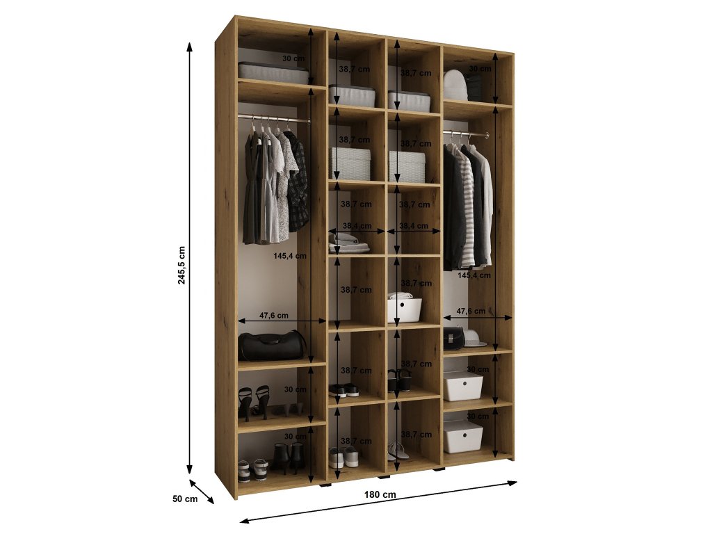 Skriňa Como je moderný a nadčasový kus nábytku, ktorý sa skvele hodí do predsiene, spálne či obývačky, kde vytvorí vkusný dizajnový prvok. Vyrobený je z kvalitných materiálov – laminovaná doska s matnou úpravou je odolná voči poškodeniu a PVC dýha predlžuje jej životnosť. Skriňa má štvoro dverí so zlatými kovovými úchytkami dodávajú skrini luxusný vzhľad. Vo vnútri nájdete dve kovové tyče na vešanie oblečenia a praktické poličky, ktoré zaisťujú prehľadné usporiadanie vašich vecí. Ak váhate medzi matným a lesklým povrchom nábytku, náš článok vám poskytne užitočné tipy pre výber.