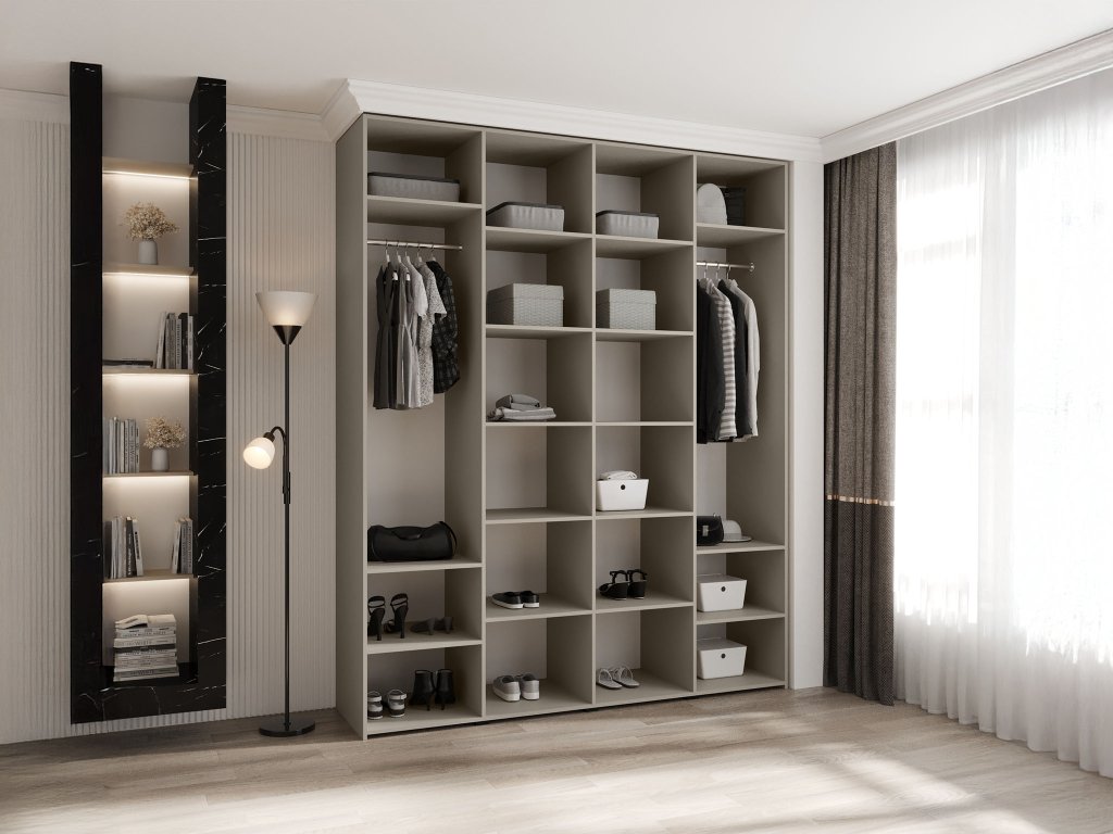 Priestranná skriňa Como 4 s tyč na zavesenie a zabudovanými poličkami