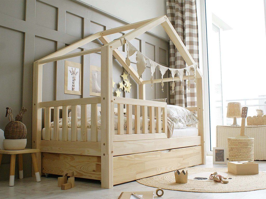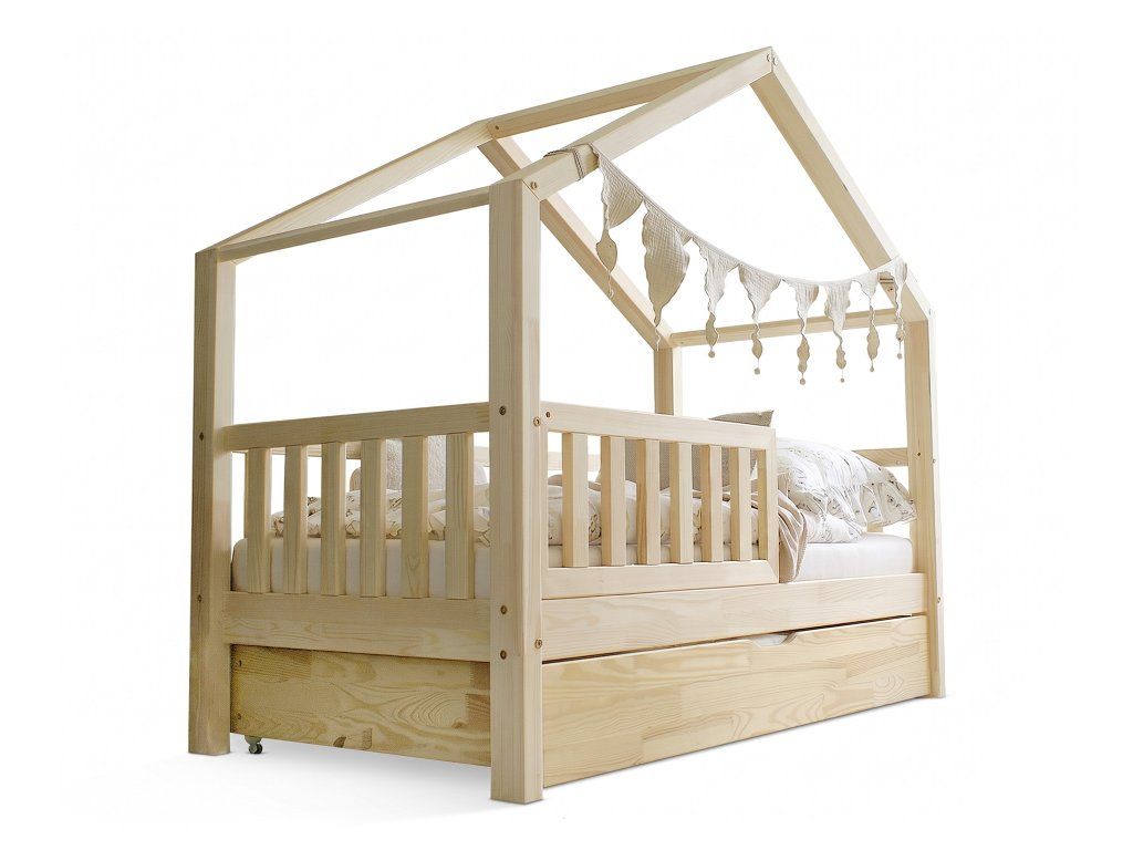 Detská domčeková posteľ s prístelkou Montero 90x190 - prírodná