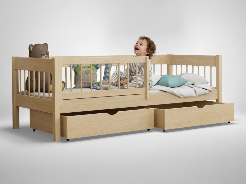 Detská posteľ so zábranou Lesanka je kombináciou bezpečia, funkčnosti a nadčasového dizajnu. Vyrobená je zo 100% borovicového dreva, ktoré zaručuje pevnosť a dlhú životnosť, no zároveň pôsobí útulne a prirodzene v každej detskej izbe. Vďaka priestranným zásuvkám získate praktické miesto na uloženie posteľnej bielizne, hračiek či sezónneho oblečenia, čím udržíte v izbičke poriadok a viac priestoru na hranie. Odnímateľná bezpečnostná zábrana chráni menšie deti pred pádom, pričom jej umiestnenie si môžete prispôsobiť podľa potreby.