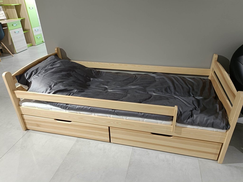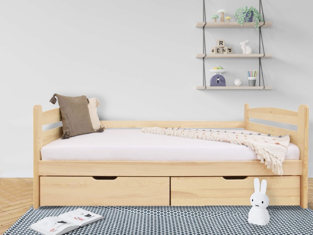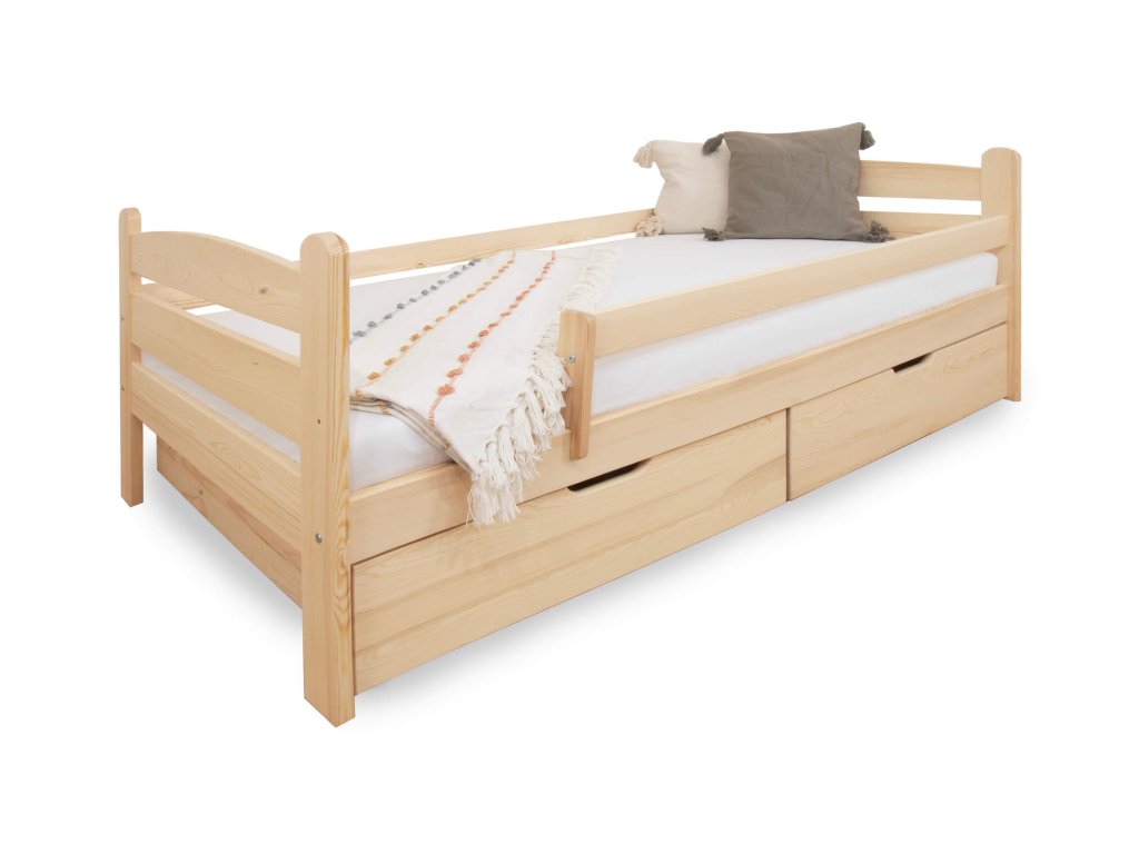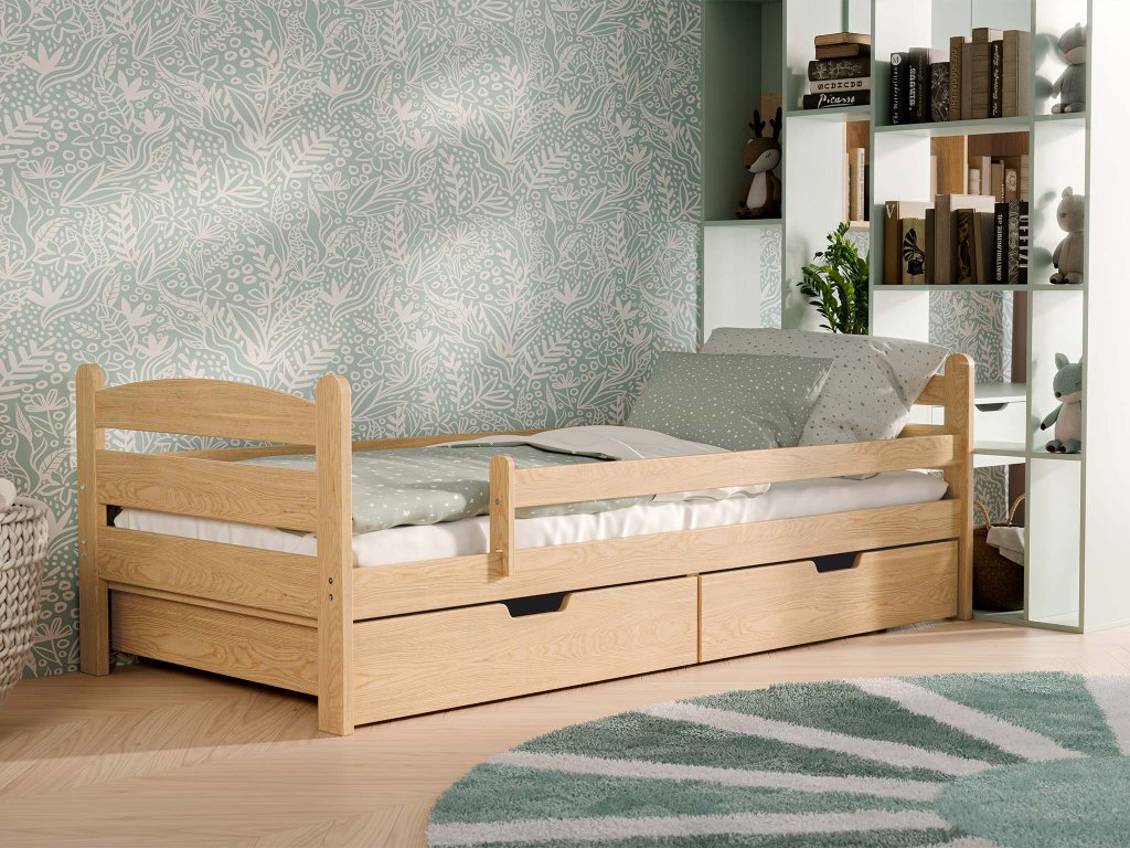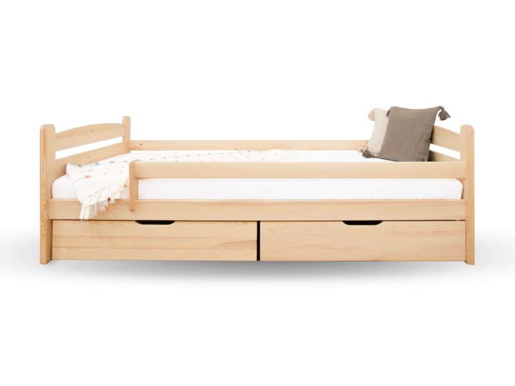 Detská drevená posteľ 90x200 s úložnými boxami a bezpečnostnou bariérkou Maurícius je skvelou voľbou do každej detskej izby. Všetky hračky, sezónne oblečenie, posteľnú bielizeň či deky hravo uschovajú až dva úložné boxy. Praktická bezpečnostná bariéra, ktorá je takmer po celej dĺžke postele, zase ochráni vaše dieťa pred pádom z postele. Bariérka je odnímateľná, tzn. keď dieťatko vyrastie, stačí ju jednoducho odmontovať. Posteľ je vyrobená z vysoko kvalitného borovicového dreva. Vďaka viacerým farebným prevedeniam ju môžete použiť v rôznych interiéroch.