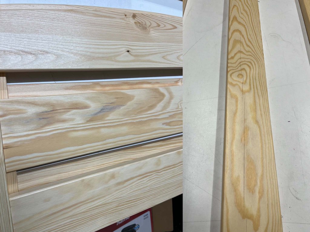 Posteľ bola montovaná a vykazuje známky montáže aj demontáže. Má aj drobné poškodenia (viď foto). Posteľ sa nenachádza v originálnom balení.