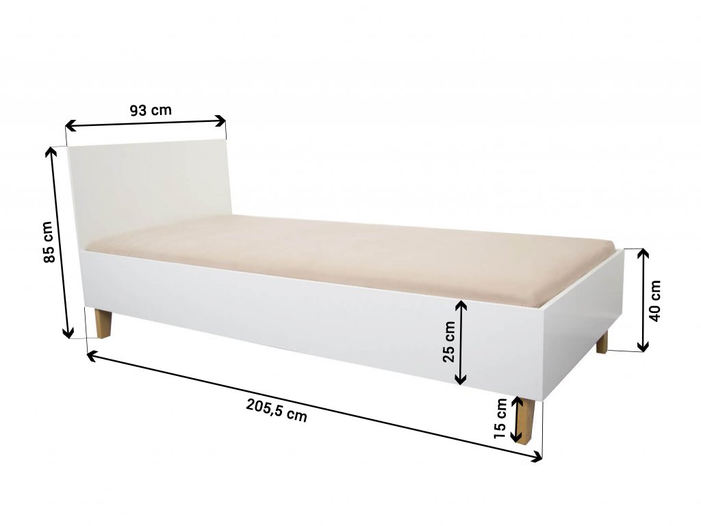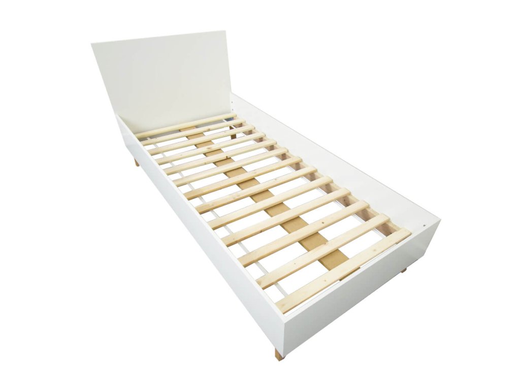 Biela detská posteľ 200x90 cm v minimalistickom dizajne je skvelým riešením do chlapčenskej alebo dievčenskej izby. Posteľ je dodávaná bez matraca a bez roštu.