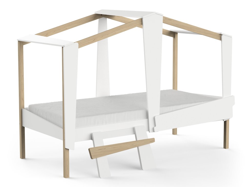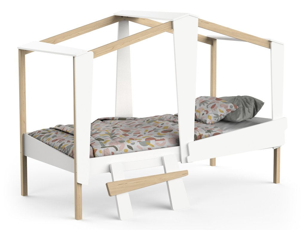 Detská posteľ Cabane v dizajne domčeka premení obyčajnú izbu na kúzelný svet plný dobrodružstiev. Je navrhnutá tak, aby podporila detskú fantáziu a zároveň poskytla maximálne pohodlie a bezpečie. Vďaka svojmu originálnemu tvaru sa stane nielen miestom na spanie, ale aj útulným kútikom na hranie či čítanie kníh. Posteľ je vhodná pre matrac so šírkou 200 cm a vyrobená z kvalitnej kombinácie masívneho borovicového dreva a drevovláknitej dosky MDF. Jej povrchová úprava je ošetrená netoxickou farbou na vodnej báze, čo zaručuje zdravé a bezpečné prostredie pre vaše dieťa. Elegantná biela farba v kombinácii s prírodným drevom pôsobí jemne a nadčasovo. Táto jednolôžková posteľ dokonale zapadne do akéhokoľvek interiéru detskej izby dievčaťa či chlapca.