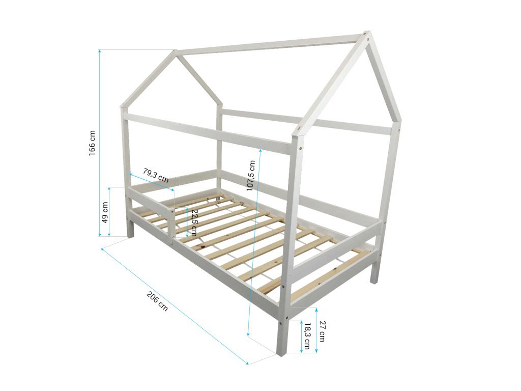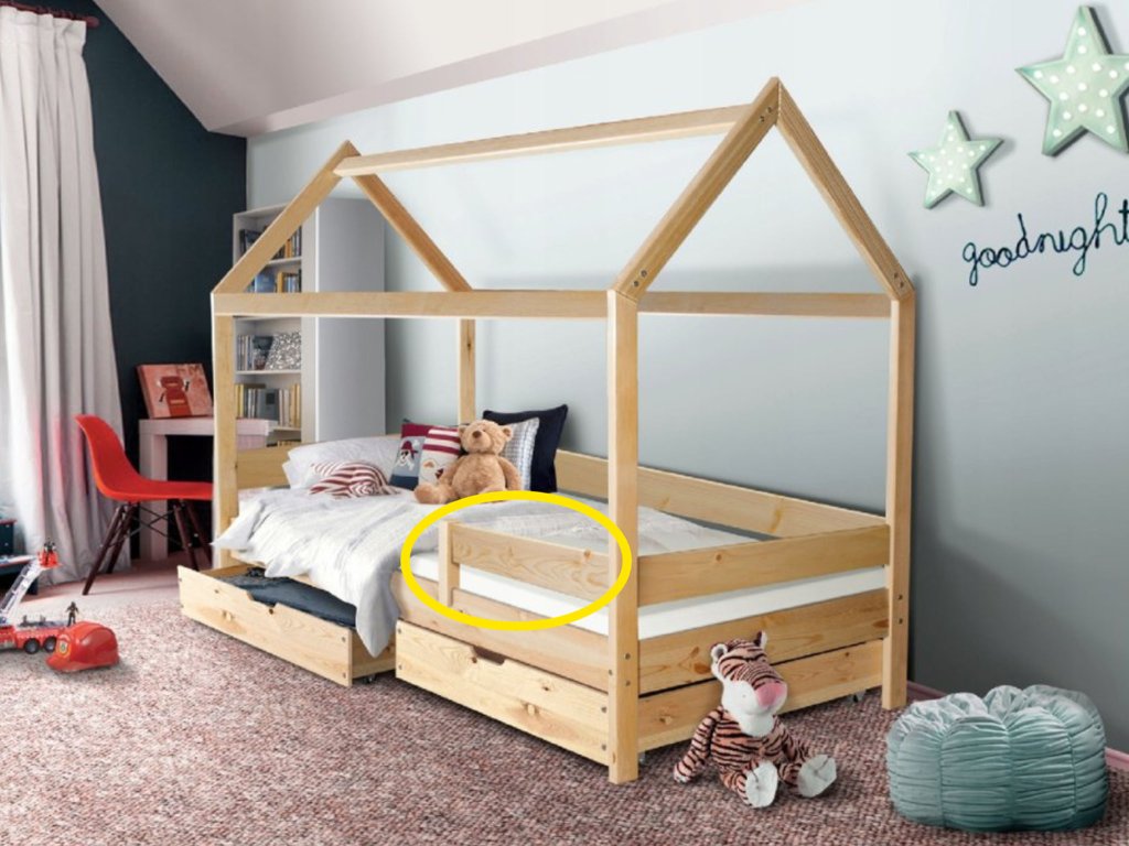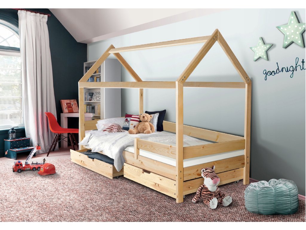 Detská posteľ domček je výnimočná predovšetkým svojou kvalitnou a pevnou konštrukciou, pretože je vyrobená z odolného borovicového dreva v prírodnej farbe. Posteľ je dodávaná spolu s krátkou bariérkou a s roštom. Bariérka je obojstranná a možno ju namontovať na ľavú alebo pravú stranu.