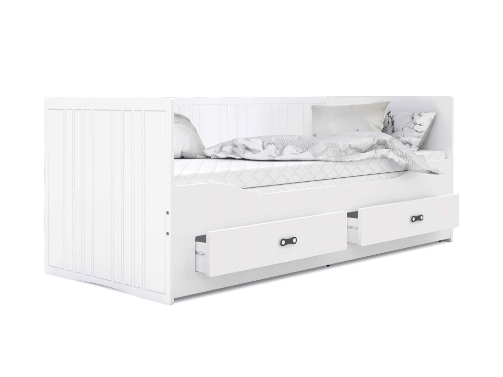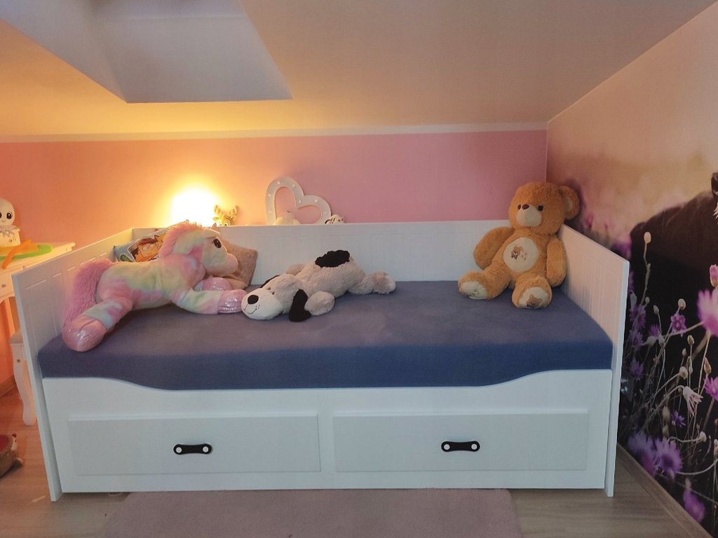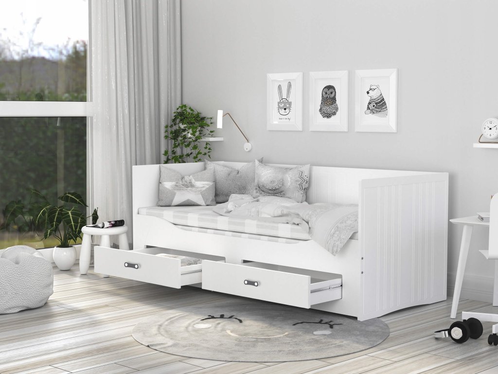 S nosnosťou až 200 kg, možnosťou rozkladania a plnou dĺžkou 200 cm sa na posteli vyspia pohodlne až dve deti (alebo pokojne dvaja dospelí). Rozkladacia posteľ má navyše taký dizajn, že cez deň môže v kombinácii s dekoračnými vankúšmi slúžiť ako pohovka. S príchodom večera môžete jednoducho odsunúť nábytok naokolo a vytvoriť z nej plnohodnotnú posteľ so skutočným matracom. Rovnako dobre poslúži aj pre dvoch súrodencov alebo aj v prípade, že k vám občas príde na prázdniny kamarát/ka vašich detí. Ak chcete posteľ používať aj ako pohovku, odporúčame ju počas dňa chrániť vhodným poťahom, prehozom alebo dekou. Takéto riešenie je ideálne pre všetky malé detské izby, ale aj pre dospelých v garsónkach či v malej spálni, ktorí nechcú mať celý priestor počas dňa zaprataný manželskou posteľou.